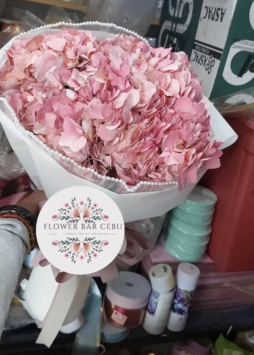 Lush Pink Hydrangea Bouquet with Pearl Accent