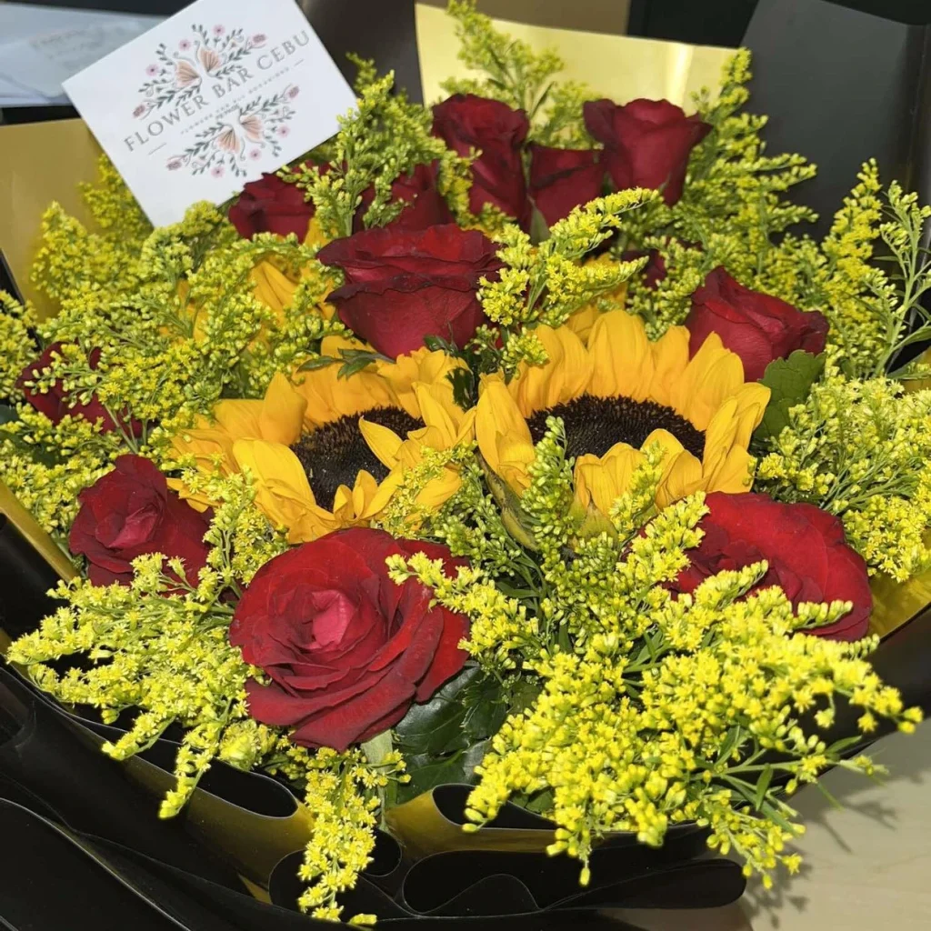 Why choose one when you can have both? Our sunflower and rose mix is specifically designed for Sinulog, blending the joyful yellow of sunflowers with the passionate red of roses. This combination creates a visually dynamic and emotionally resonant bouquet. Often complemented by bright yellow solidago or delicate baby’s breath, these arrangements are a vibrant spectacle, ready to say “Pit Seรฑor!” with every petal. This blend ensures you have the ultimate flower for Sinulog festival display.